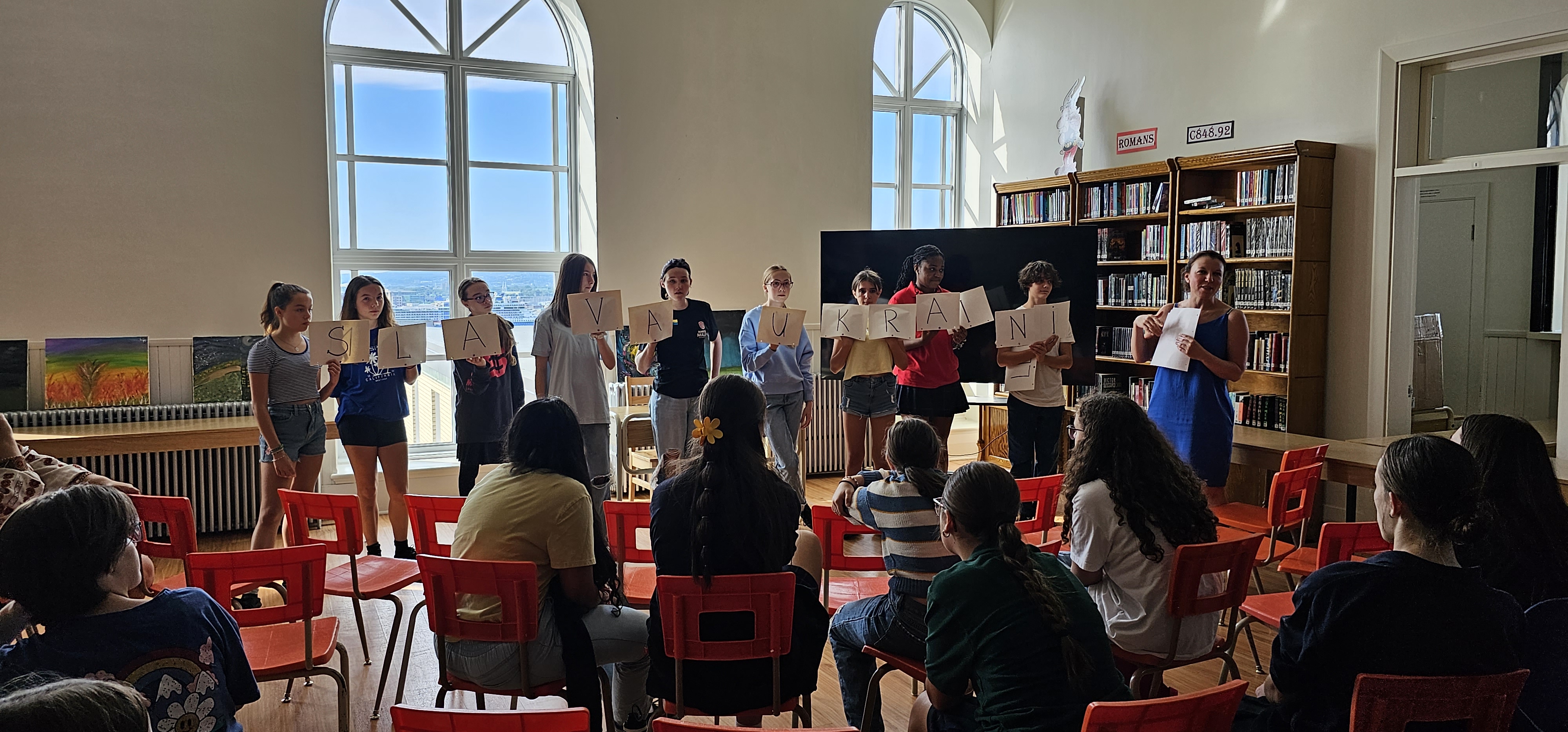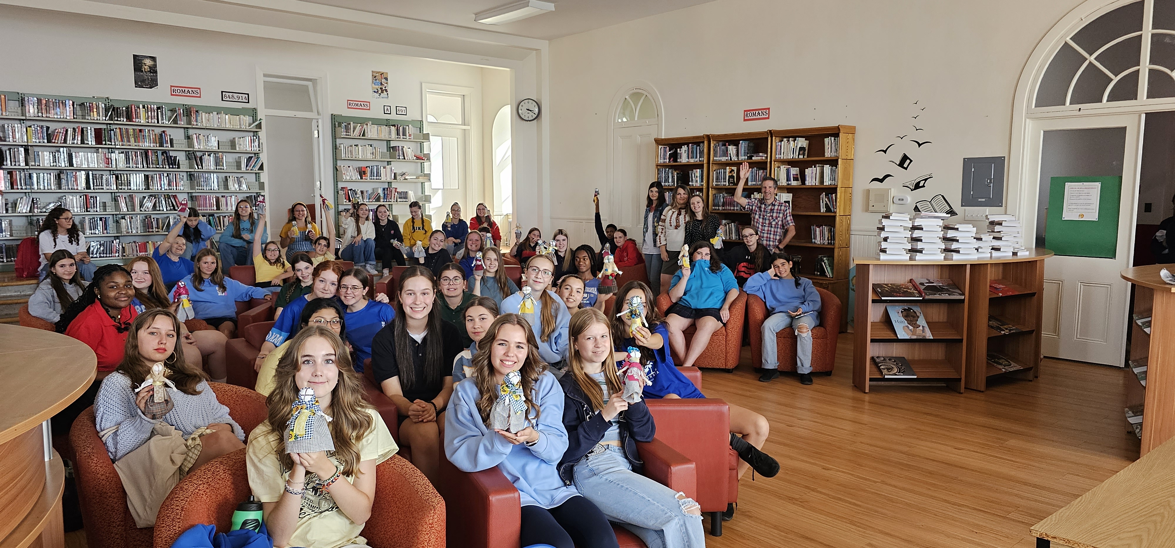 Une Journée de l’Ukraine à Marcelle Mallette avec 80 élèves du secondaire, Des plats traditionnels VARENIKIS avec Anna Spirina, des danse ukrainienne avec Alessia Shyshova et la confection de poupée ukrainienne MOTANKA avec Nathalia Spirina et Yeva Rybchunovska