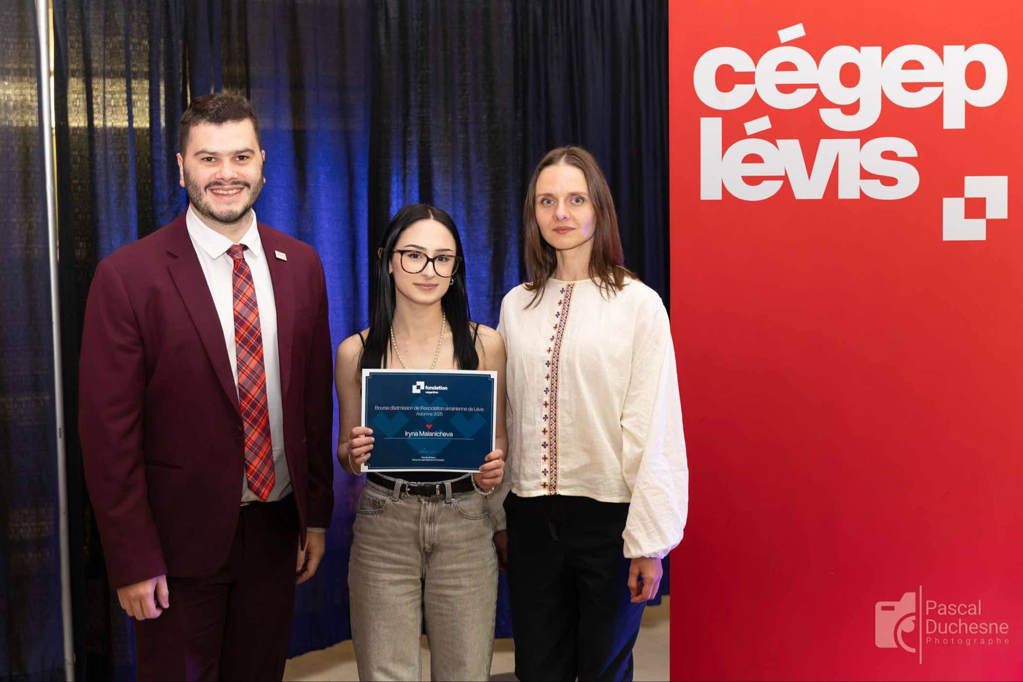 Déjà, après seulement sa première année d’existence et grâce à vos dons, l’Association Ukrainienne de Lévis a pu remettre une bourse de 1000$ à une jeune étudiante ukrainienne de Lévis. Il s’agit de Iryna Malanicheva, une étudiante persévérante qui a surmonté tous les obstacles dès son arrivée au Québec en décembre 2023. Partie de l’Ukraine avec ses parents et ses deux jeunes frères, Iryna a rapidement appris la langue française qu’elle maitrise très bien aujourd’hui. Elle a toujours fait preuve de courage et de détermination afin de s’adapter et de s’intégrer à sa nouvelle réalité. Ses efforts soutenus ont inspiré l’association à lui remettre cette bourse pour l’encourager à persévérer encore. D’ailleurs, Iryna a été acceptée au Cégep de Lévis au programme de finance où elle entrera à l’automne, Bravo Iryna tu es un exemple pour toute ta communauté ukrainienne et aussi celle de Lévis.